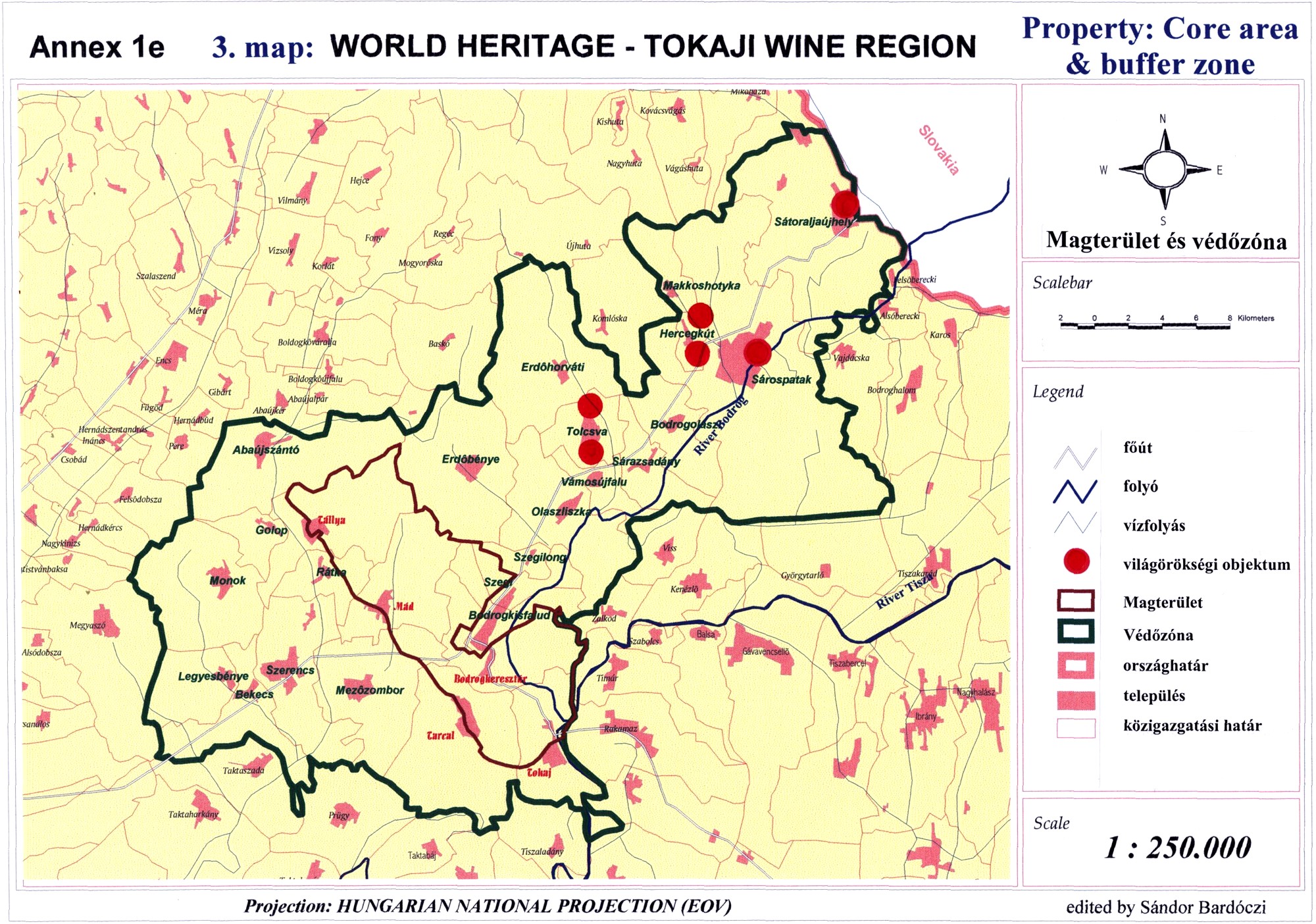 Die Stadt ist die berühmteste Siedlung der historischen Weingegend von Tokajer-Hegyalja. Sie liegt am Zusammenfluss der Theiß und Bodrog, am Fuß eines vulkanischen Kegel, der kühn aus dem Fachland (Kopasz-Berg) hervorrägt.